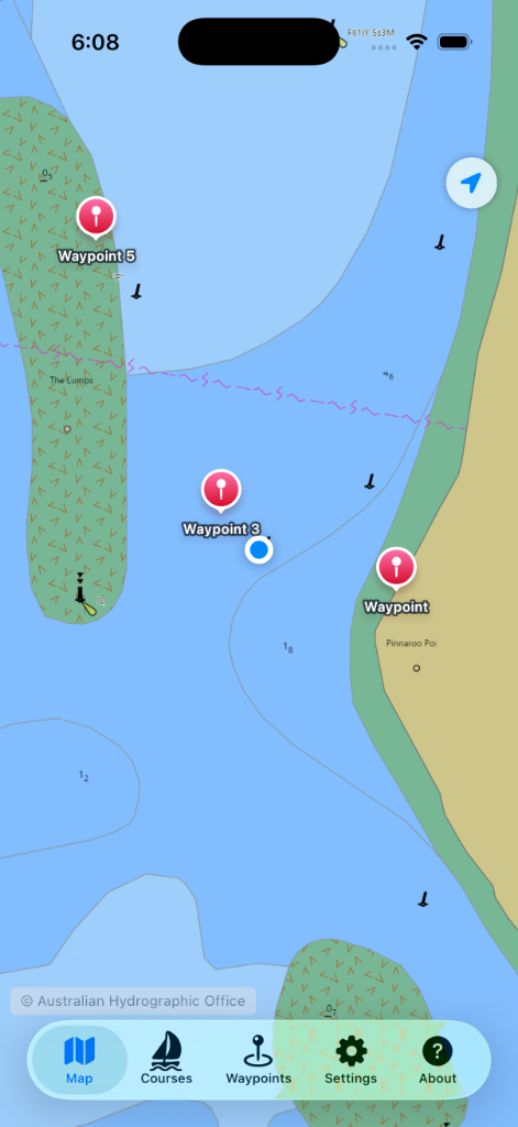 - Long-press anywhere on the map to drop a new waypoint pin at that location. An edit sheet will appear to name the waypoint.